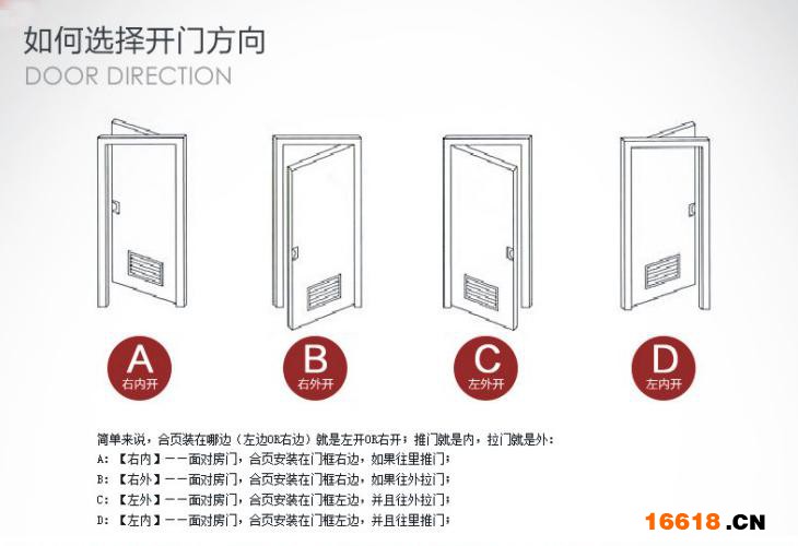 ◆圖上有示例,確定房間門的左右內外開方向,如果看不太清楚 ,及時咨詢哦!QQ1739103142 電話13570833857