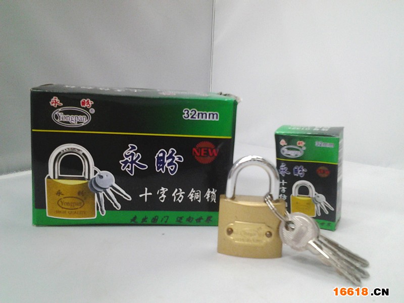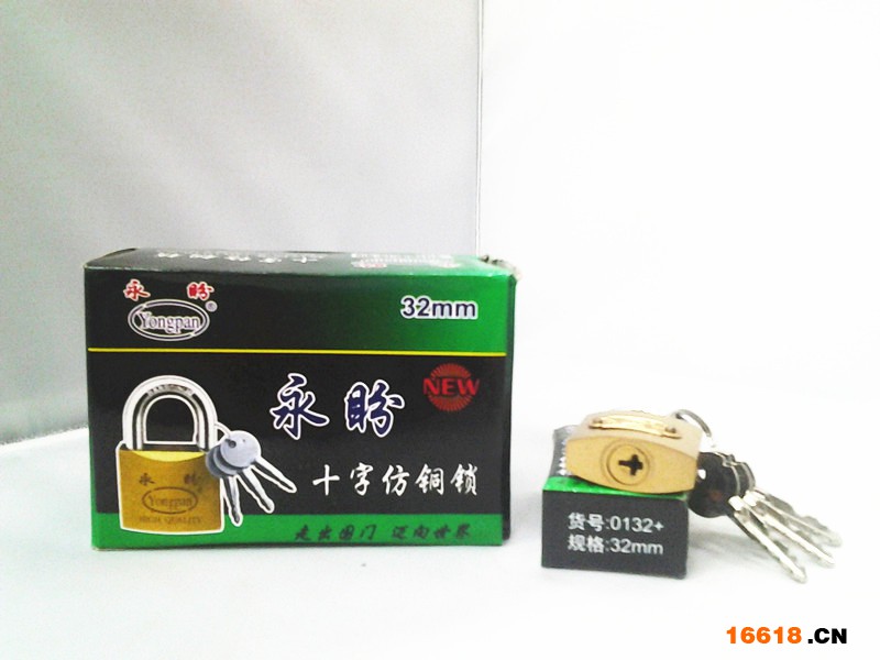 永盼防盜鎖仿銅32mm十字直開(kāi)掛鎖宿舍大門柜子倉(cāng)庫(kù)門專用鎖