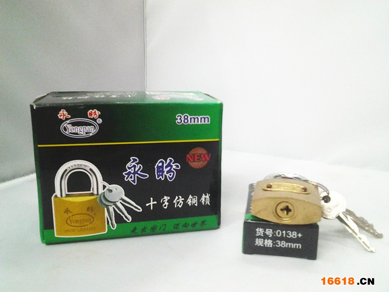 永盼防盜鎖仿銅38mm十字直開掛鎖宿舍大門柜子倉庫門專用鎖