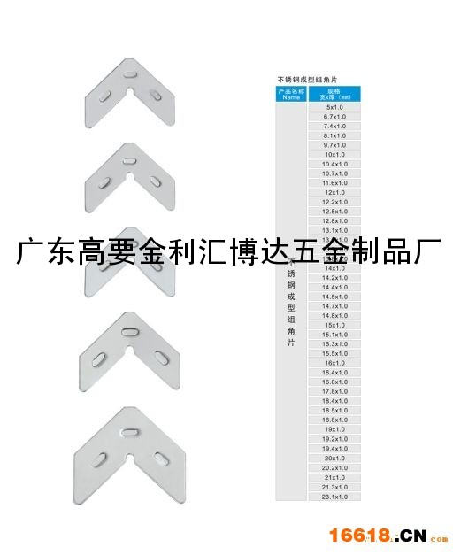 我公司生產的組角片301、304材質有大量存貨,0.8mm厚,規格從6.0-23.8齊全。